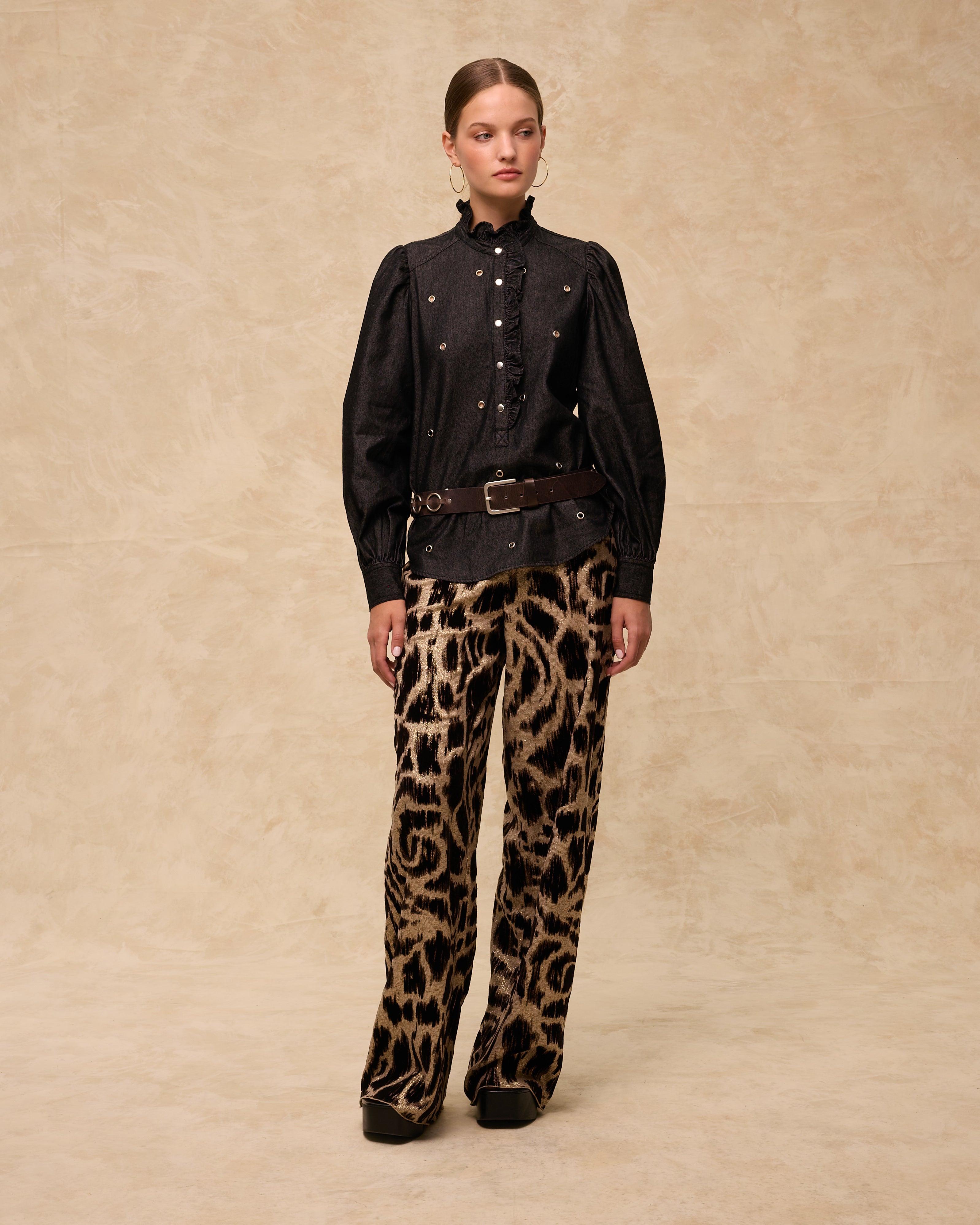 BEDUINA | Gold Leopard Jacquard Wide-Leg Trousers