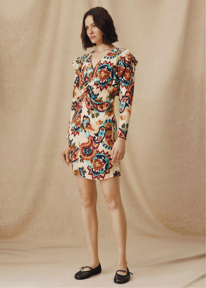 SALENA | Cream Multi Ruche Detail V-Neck Short Dress