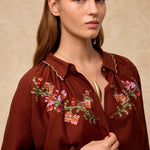 BOTANIC | Chestnut Brown Embroidered Floral Blouse