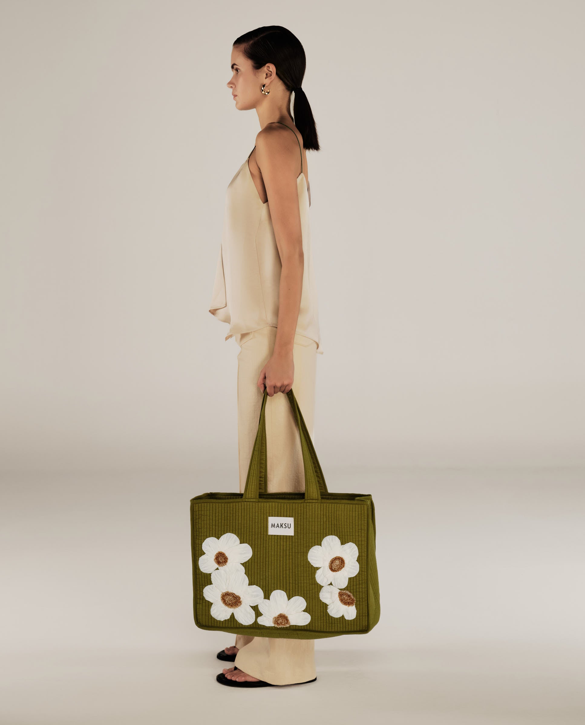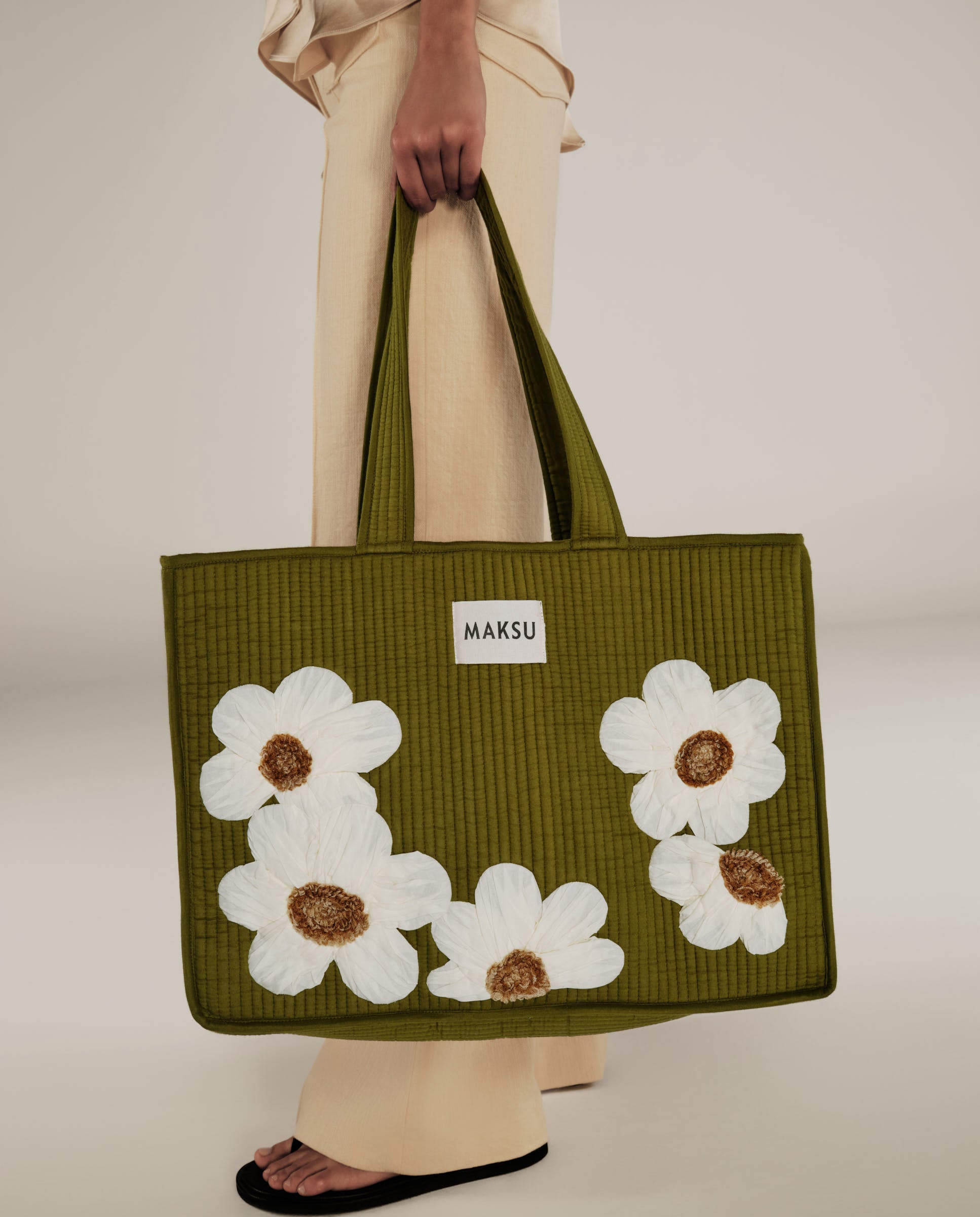 CRISTINA | Green Flower Cotton Tote Bag