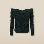 JANE | Forest Green Draped Jersey Off-Shoulder Top