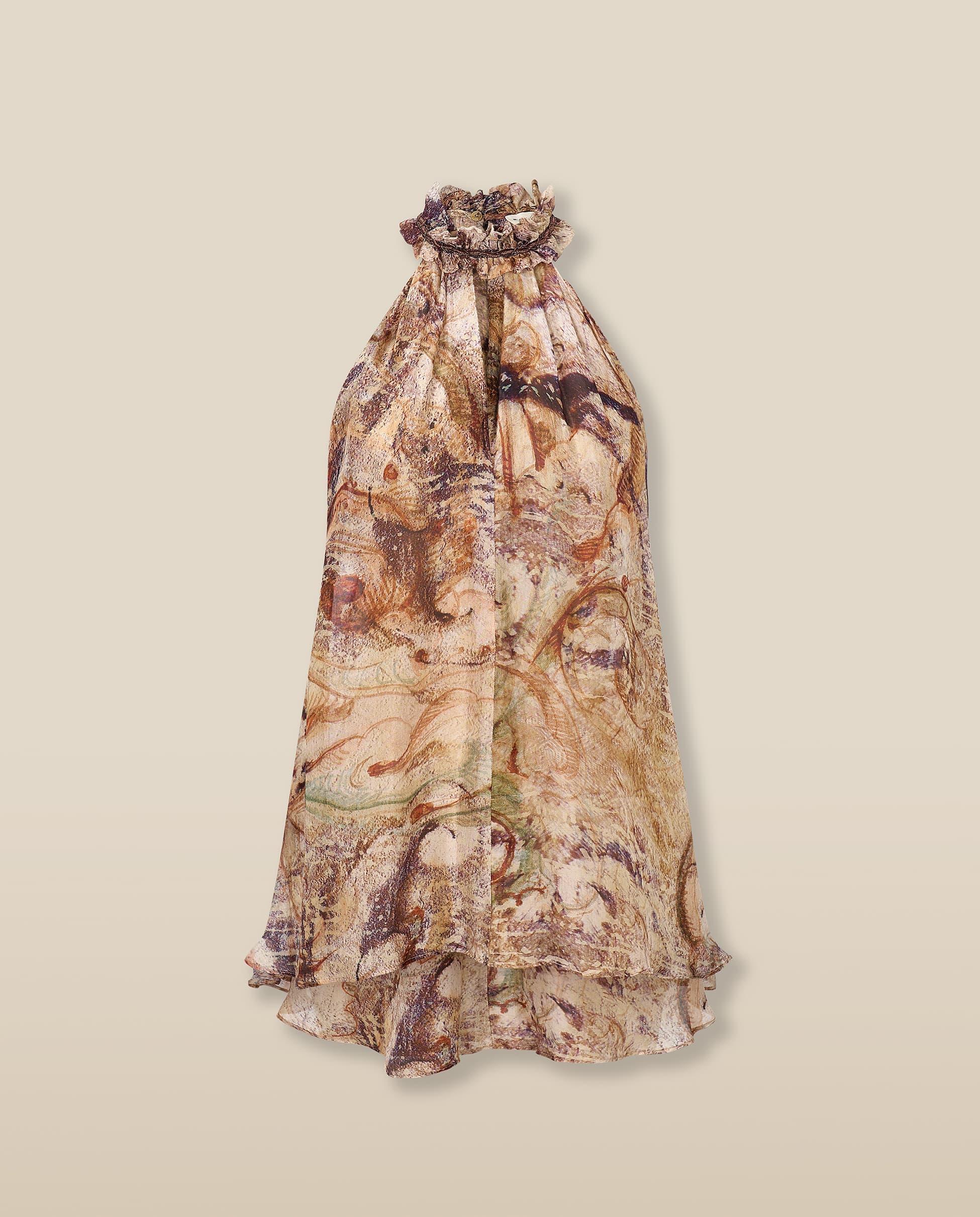MARSIGLIA | Beige Multi Halter-Neck Printed Top