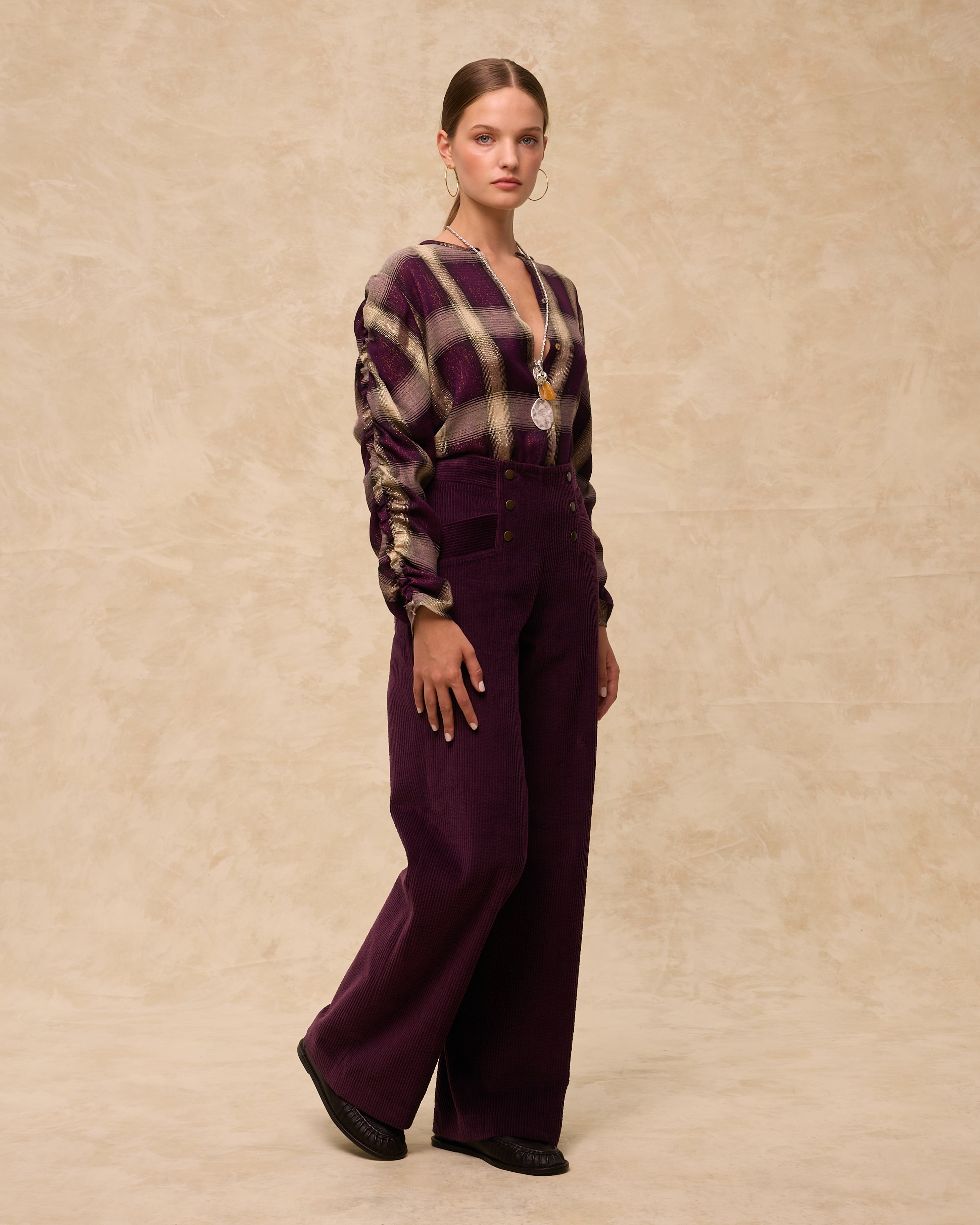 MILENKA | Aubergine Cotton Corduroy Trousers