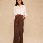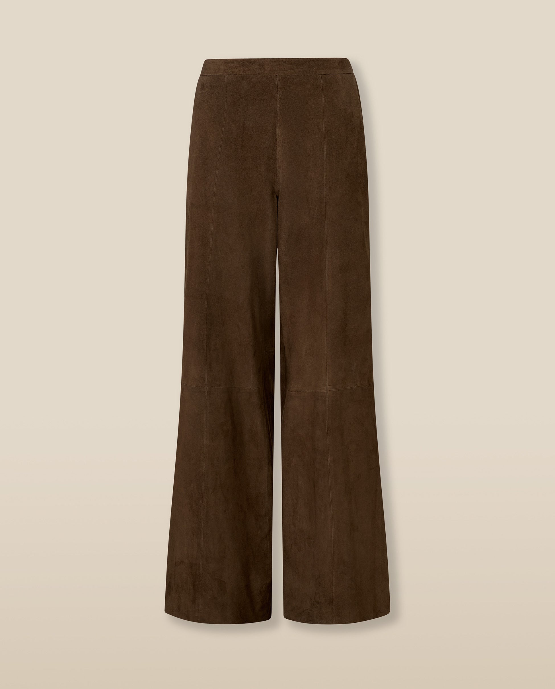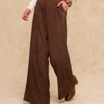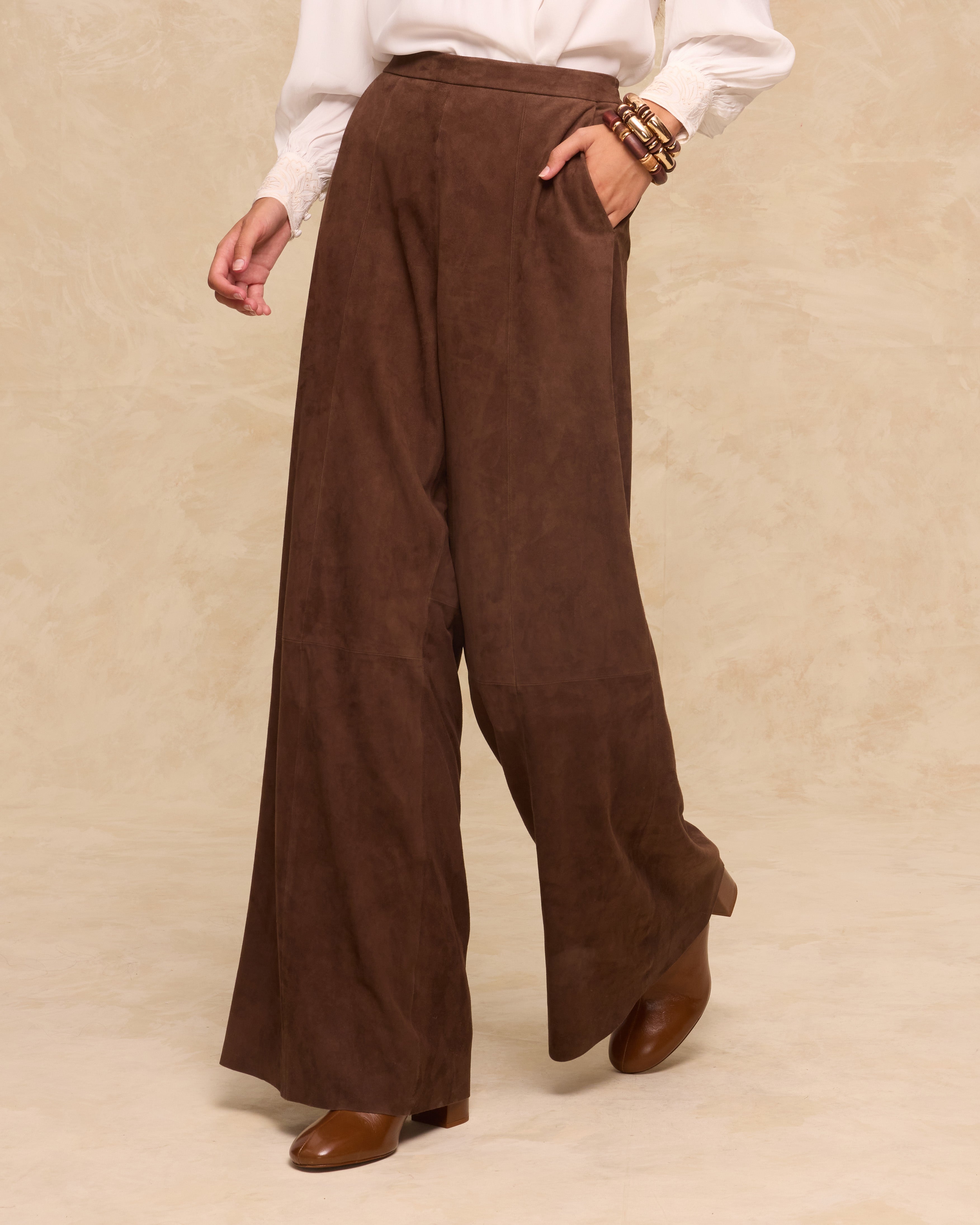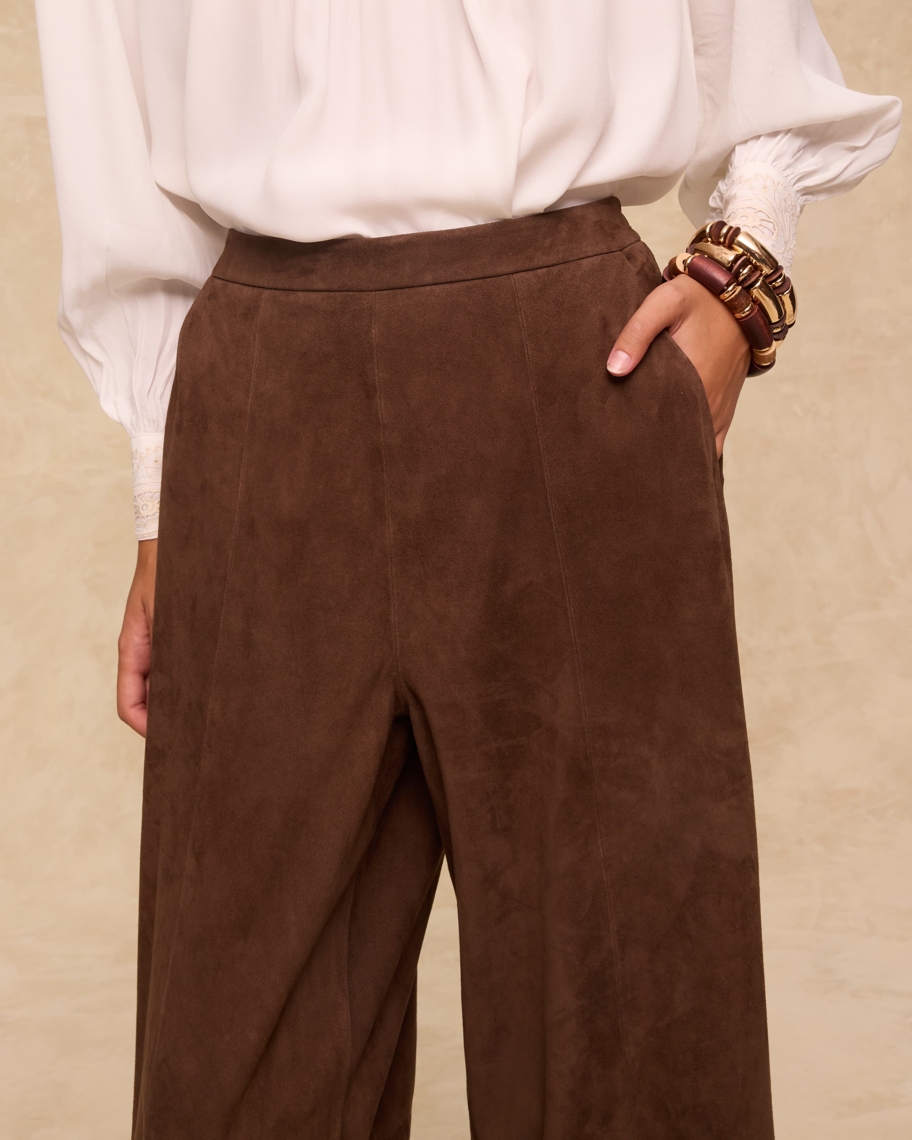 MOCHA | Dark Brown Suede Wide-Leg Trousers