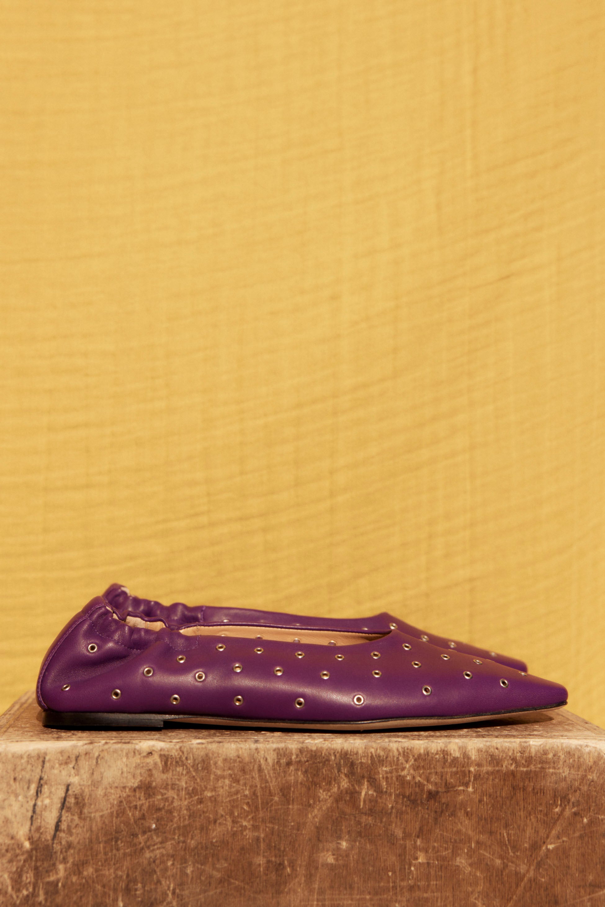 The Nico ballerinas for women in purple are a leather design with silver studs, which provide a touch of punk inspiration. They feature an elongated toe that flatters the figure, an elastic detail on the heel for a good fit and a stylish brown interior. In addition, they are manufactured in Spain.