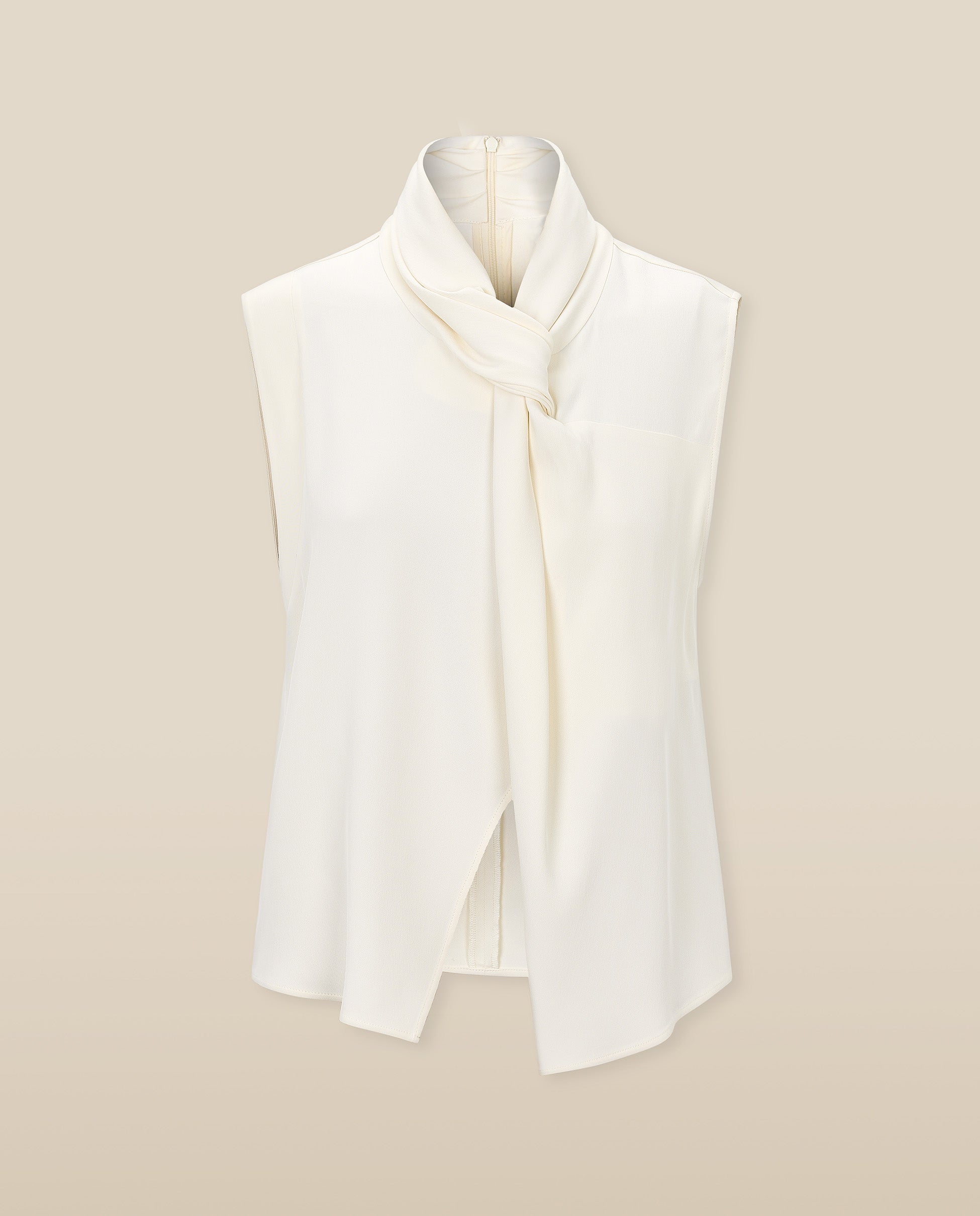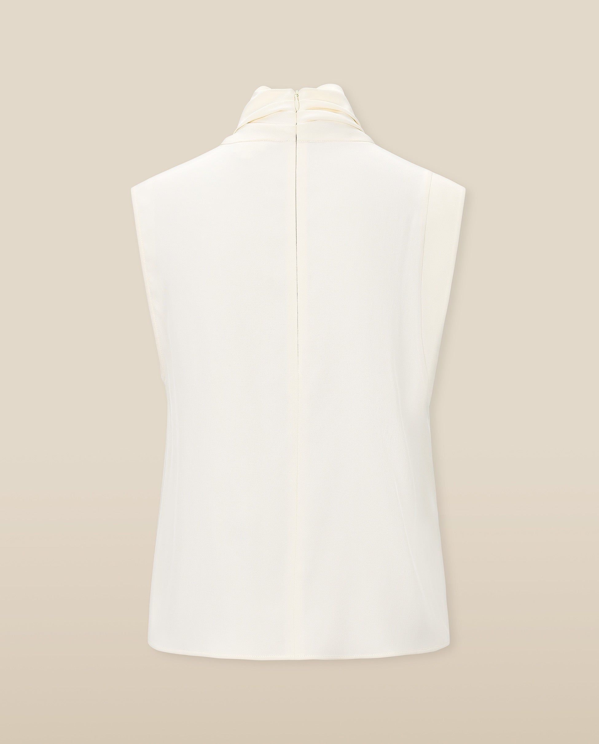 Elevate your wardrobe essentials with the Parul Blouse, defined by its sophisticated scarf-inspired neckline. Cut from a luxurious, fluid fabric, it drapes effortlessly, to transition seamlessly from workday dressing to weekend outings. An asymmetrical front hemline creates a subtle cutout effect, adding to its modern allure. A concealed back zip closure completes the streamlined silhouette, striking the perfect balance between modern elegance and enduring style.